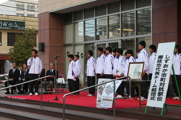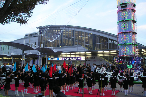 駅伝結団式です。 | まず駅北口で点灯式が行われ、 藤枝聖母幼稚園の鼓笛隊演奏や 聖歌が歌われました。 |