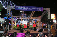 点灯式イベントで熱演するブラス アンサンブル「ベルフレンズ」のステージです。 この夜、藤枝駅周辺は、夜遅くまで 人の波が途絶えませんでした。 |