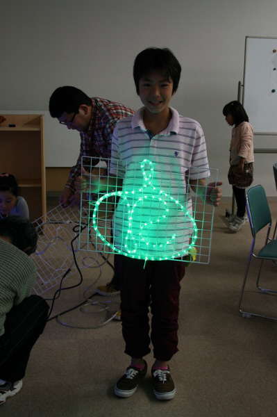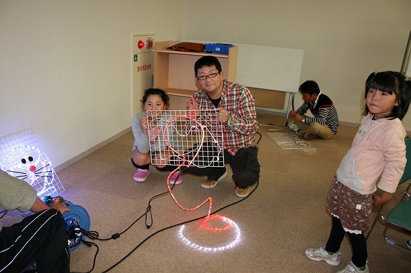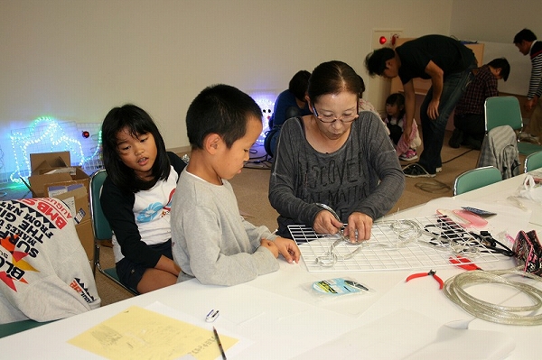 又、この日は「BiVi」内の市立図書館会議室でロープライトアートの講習会が行われ、親子連れの皆さんが楽しそうに作品を作っていました。