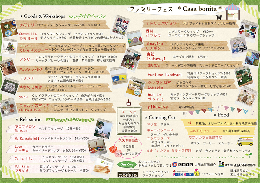 アロマテラピークラフトのワークショップ:500円~1,000円