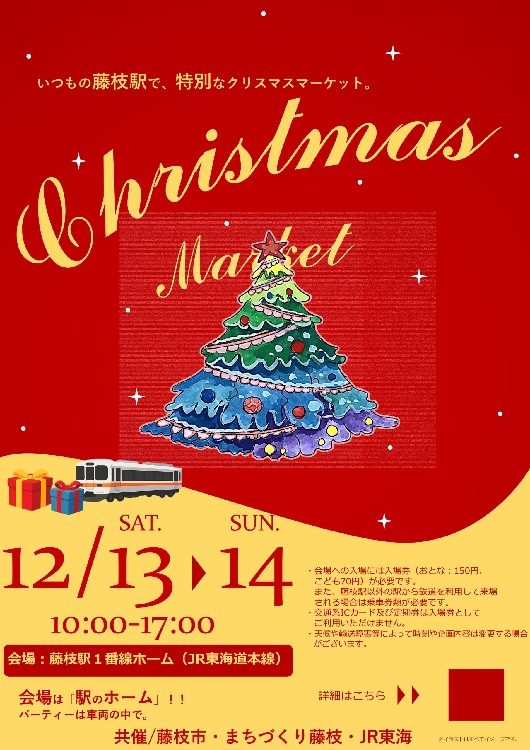 12月13日(土)・14日(日)10時00分より、藤枝駅構内の1番線ホームにて初めての試みとなる『藤枝駅1番線クリスマスマーケット』を開催します。